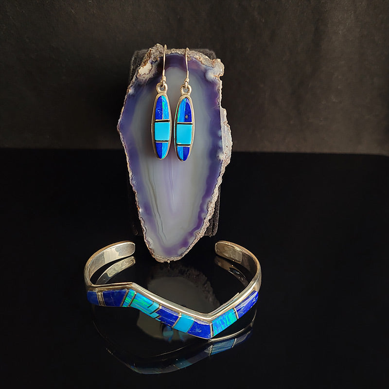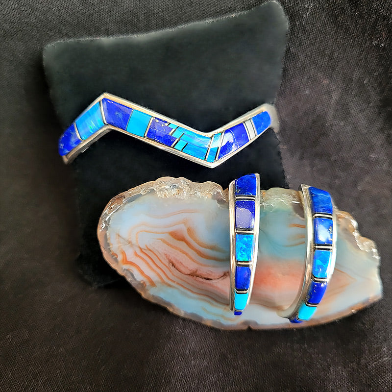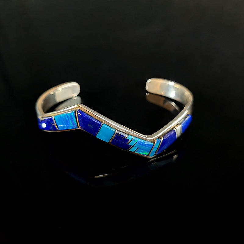 This is a beautiful Lapis Lazuli, Opal, and Turquoise Bracelet set in Sterling Silver. Beautifully handmade by Native American tribes!