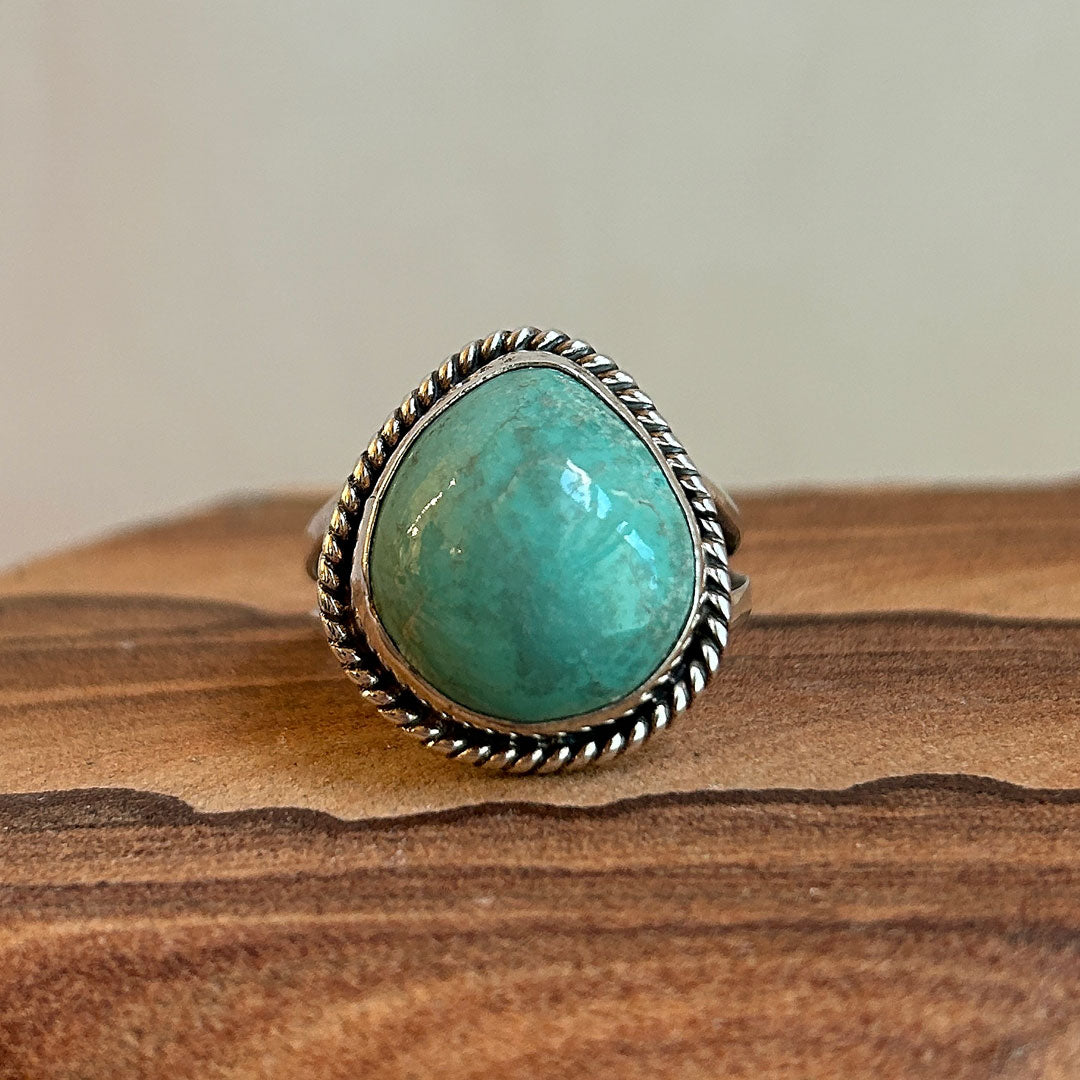 This unique and genuine Turquoise and Sterling Silver ring is a beautiful piece handcrafted to perfection.